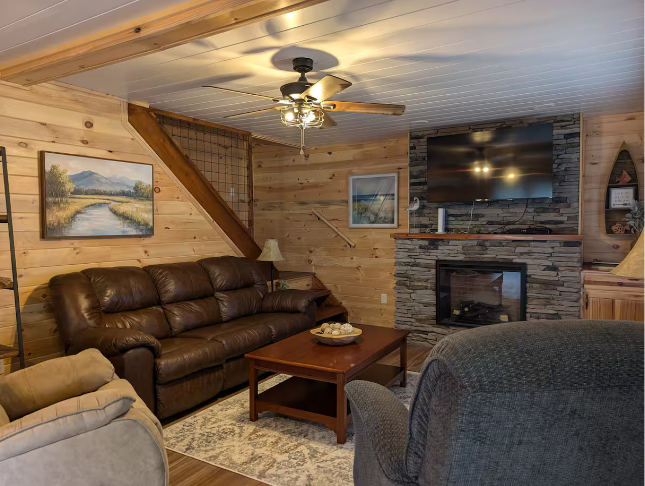 - 2 queen beds, 1 full and 1 twin bed